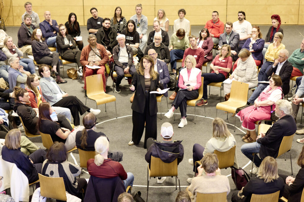 Ein besonderer Höhepunkt war der Impulsvortrag von Barbara Blaha, Autorin und Gründerin des Momentum Instituts in Wien. In ihrem Vortrag skizzierte sie die Dringlichkeit, unsere Demokratie zu schützen, denn ein Ende der Demokratie ginge immer mit einem Abbau von staatlichen Gesundheits- und Sozialleistungen einher. „Demokratie beginnt zu bröckeln, wo Menschen das Gefühl bekommen, dass etwas nicht mehr gestaltbar ist. Das verstärkt Gefühle von Ohnmacht, Kränkung, Abstieg und Unsicherheit. Und solange man Angst um Verlust hat, ist man nicht bereit zu teilen.“